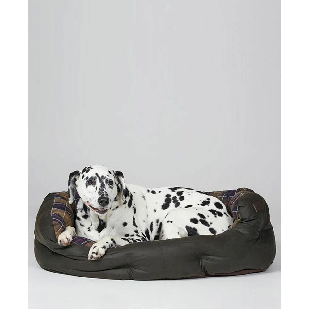 Denne stilige hundesengen er laget i Storbritannia med en robust vokset bomulls ytre og et koselig bomullsfôr i Barbours ikoniske Classic Tartan. Den er designet med høye sider for å holde hunden din koselig og trygg, pluss en nedfelt front. for enkel tilgang. Puten er avtagbar og vaskbar for ekstra bekvemmelighet. Også tilgjengelig i 30