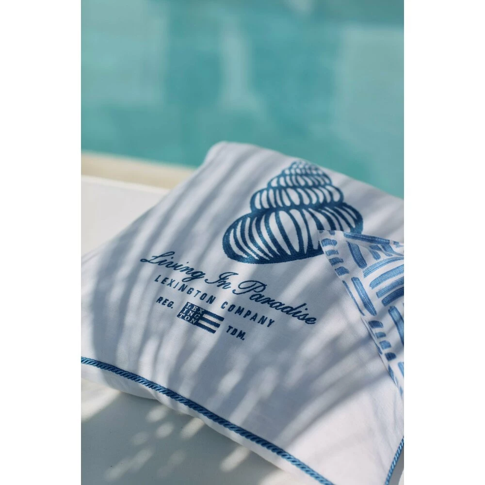 • Mykt bomullslerret • Unikt, brodert sommerbudskap fra Lexington • Pyntesnor i matchende farge hele veien rundt • Glidelås i matchende farge nederst • Vevd Lexington-logo i hjørnet øverst • Ensfarget hvit bakside • 100 % bomull Dette putetrekket i ren bomull har et vakkert broderi med en konkylie i blå kontrastfarge foran og ensfarget hvit bakside. Putetrekket har glidelåslukking nederst og pyntesnor hele veien rundt.